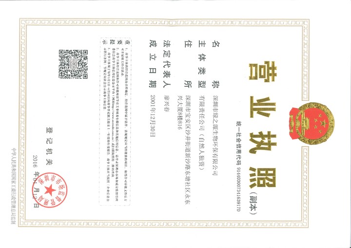 深圳市綠之源生物環保有限公司營業執照
